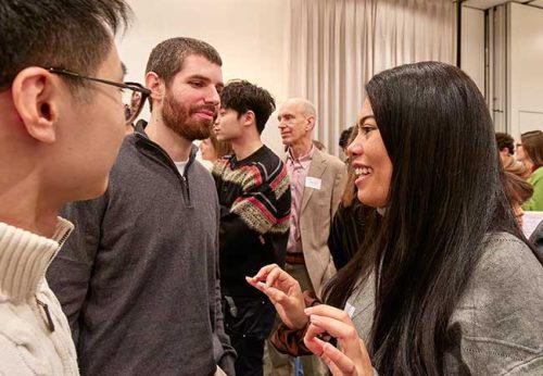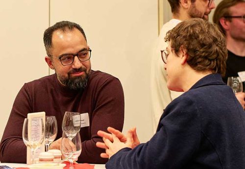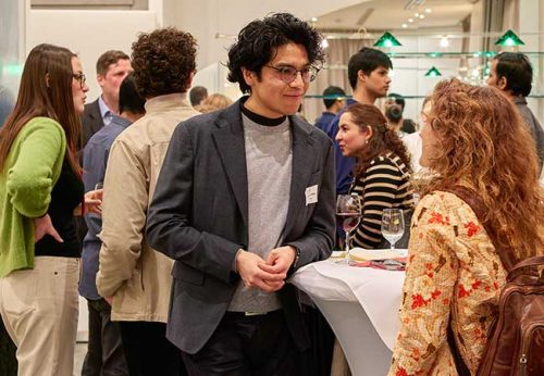 It is sometimes in the strangest of settings that we are reminded that physics is everywhere. Whether in faraway galaxies or here at home, its laws govern co-presence, motion, attendance and chance. Its elemental logic can even deliver insights into social encounters, including the 2026 New Year’s reception for Goethe University’s international researchers. During this encounter in late January, many different bodies – in our case quite literally those of the more than 90 participants from 26 different countries – came together in a set space for a specific length of time. The conversations these bodies engaged in can be compared to particles in motion – as individual voices bounced around the room, lingering engaged with another set (or two, or three) for a while, and then – drawn by other forces (a familiar voice? The buffet?) – moving on.
