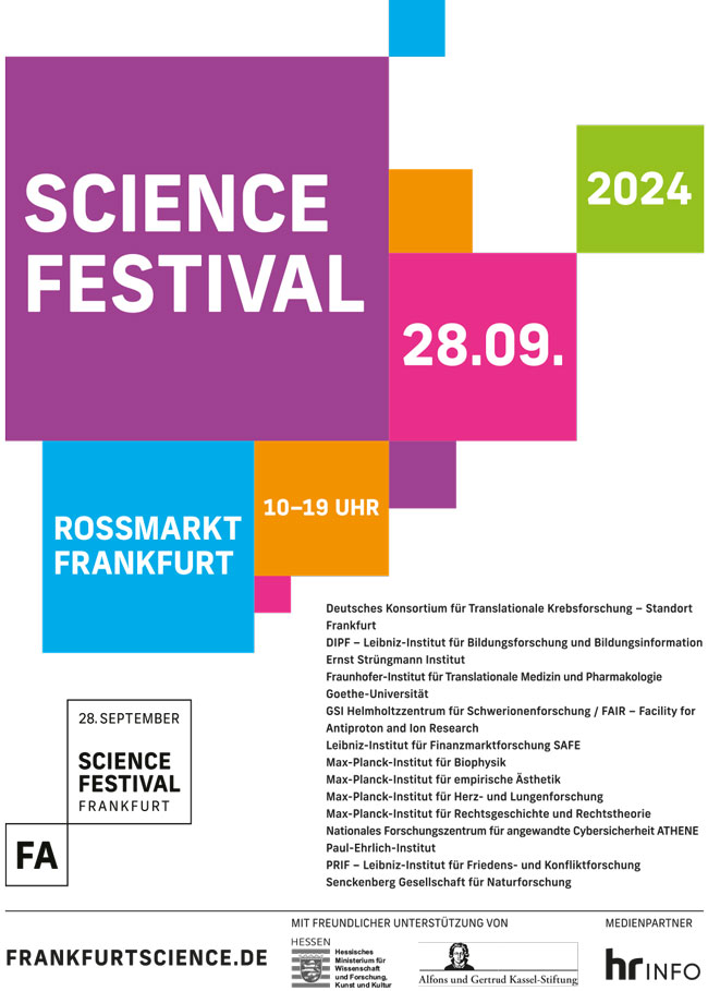 „Mit unserem Festival wenden wir uns als neu gegründetes Wissenschaftsnetzwerk bewusst an die Öffentlichkeit, um Interesse an der Wissenschaft zu wecken, aber auch Fragen zu dem Wie, Was und Warum in der Forschung zu beantworten“, betonte Prof. Enrico Schleiff, Präsident der Goethe-Universität, zum Start des Festivals. „Unser Anliegen ist es, den Dialog zwischen Forschung und Gesellschaft zu stärken und wissenschaftliche Erkenntnisse in die Breite zu tragen – und Spaß machen soll das alles auch, für die ganze Familie“.