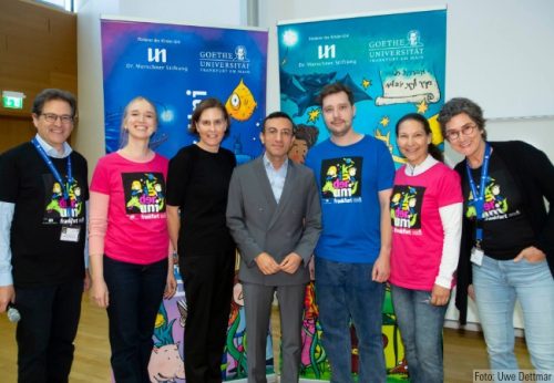 Fragen konnten die Kinder auch wieder im jeweiligen Quiz zur Vorlesung beantworten. Wer alle Antworten richtig hatte, konnte einen von vielen tollen Buchpreisen gewinnen, aber auch Kinder-Uni-T-Shirts und Eintrittskarten in regionale Museen wie das Saalburg Museum. Und wer in diesem Jahr nicht gewonnen hat: Der Termin für die nächste Kinder-Uni steht bereits fest. Sie findet in der Woche vom 7. September 2026 statt. Nähere Informationen dazu gibt es aktuell immer auf der Seite www.kinderuni.uni-frankfurt.de.