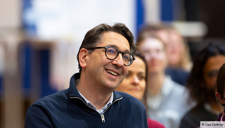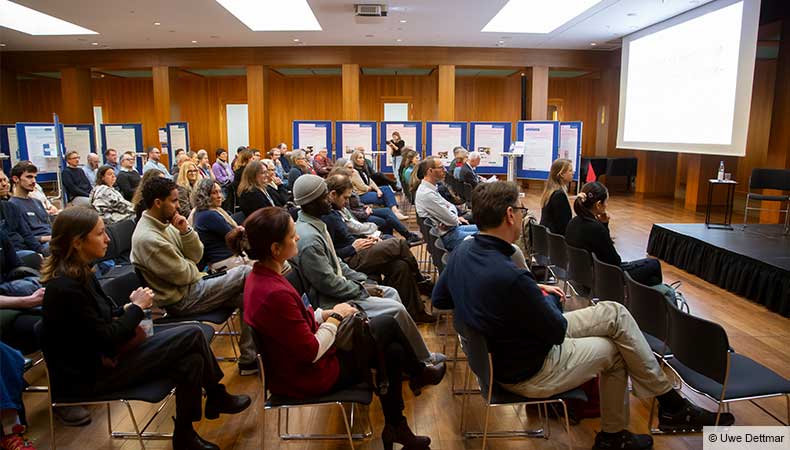 Im Anschluss daran gaben Präsidiumsmitglieder Einblicke in die vier Handlungsfelder: Forschung und Transfer, Lehre und Studium, Campus sowie Kultur und Struktur und stellten zentrale Herausforderungen und Erfolge aus den Bereichen vor. Danach tauschten sich die rund 100 Teilnehmenden an insgesamt 23 Ständen über laufende Projekte aus und lernten engagierte Universitätsmitglieder kennen. Beim gemeinsamen Ausklang im 4. OG des PA-Gebäudes diskutierten die Teilnehmenden lebhaft weiter und besprachen nächste Schritte.