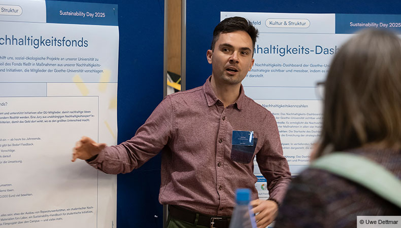 Eingeladen hatten Präsident Prof. Dr. Enrico Schleiff und das Nachhaltigkeitsbüro, mit dem Ziel, der Hochschulöffentlichkeit sowohl Einblicke in die geplanten Maßnahmen der Nachhaltigkeitsstrategie zu geben als auch konkrete Projekte vorzustellen. Bei der Veranstaltung kam die wachsende Nachhaltigkeits-Community an der Goethe-Universität zusammen, tauschte Ideen aus und schloss neue Kontakte.